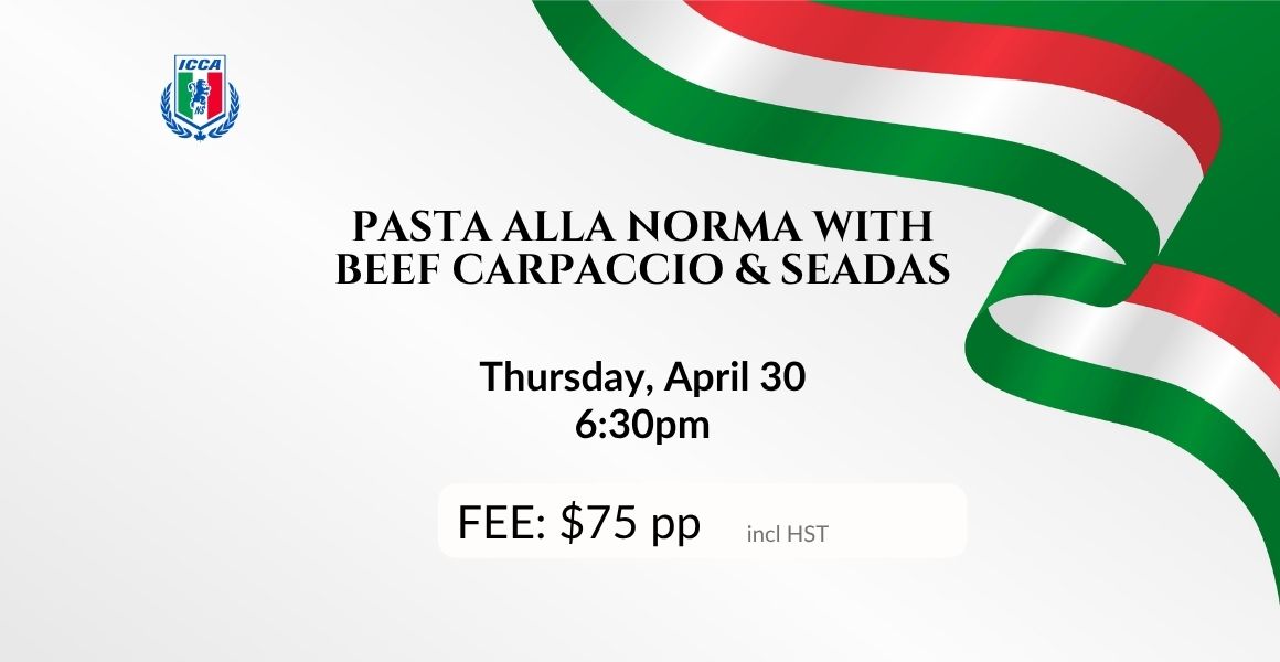 Beverages: We do offer limited options for drink purchases for cooking classes hosted at the Italian Canadian Cultural Association – open to the community as guests. Payment via card only.